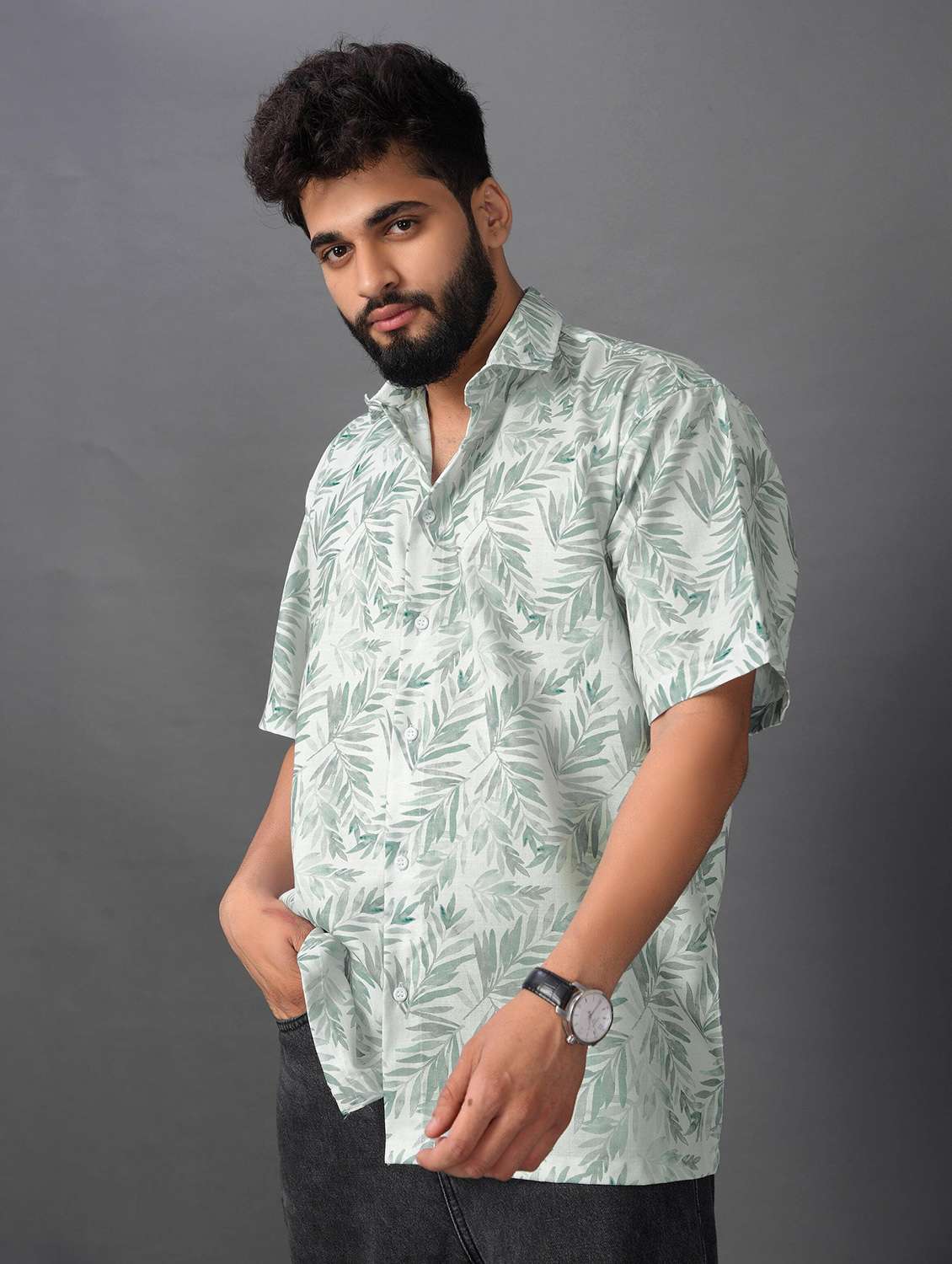 men printed short sleeve oversized casual shirt