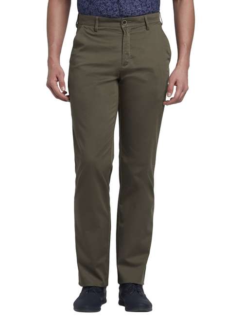 - » olive green solid flat front casual trouser