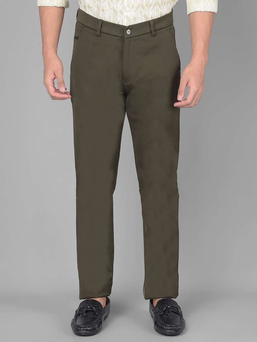 Crimsoune club men's Trousers in olive - stylish, comfortable, and versatile with a classic plain pattern, perfect for any occasion.