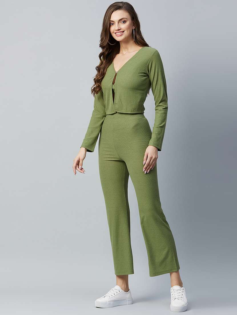 - » v-neck solid top with trouser set