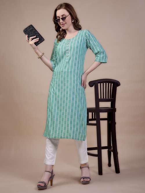 green cotton blend aline kurta