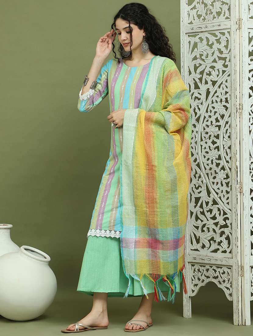 women three quarter sleeve kurta palazzo with dupatta set