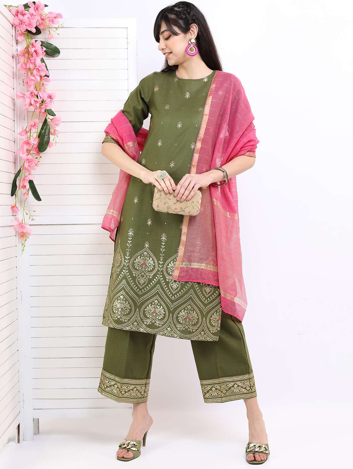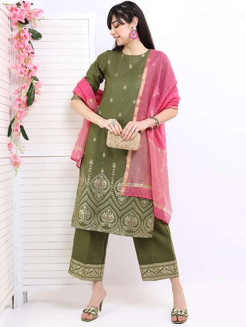 - Find gorgeous sets of ethnic wears in trending designs in green colors suitable for casual wear of occasions.