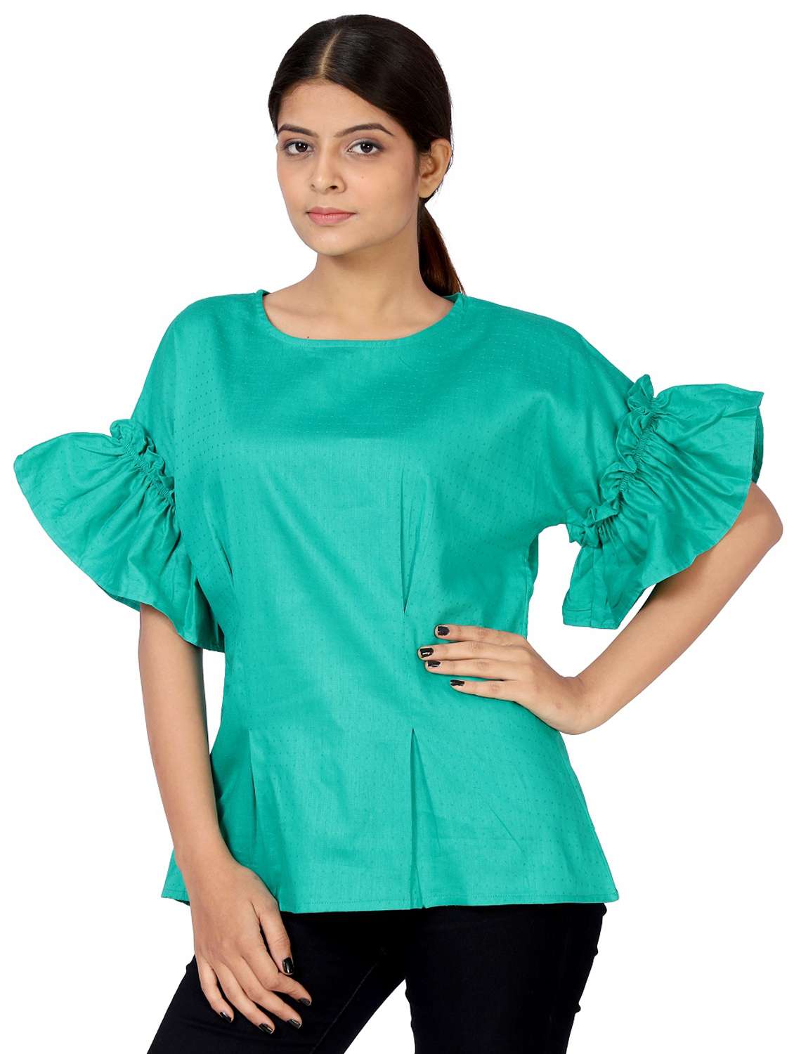 ruffle trim bell sleeved top