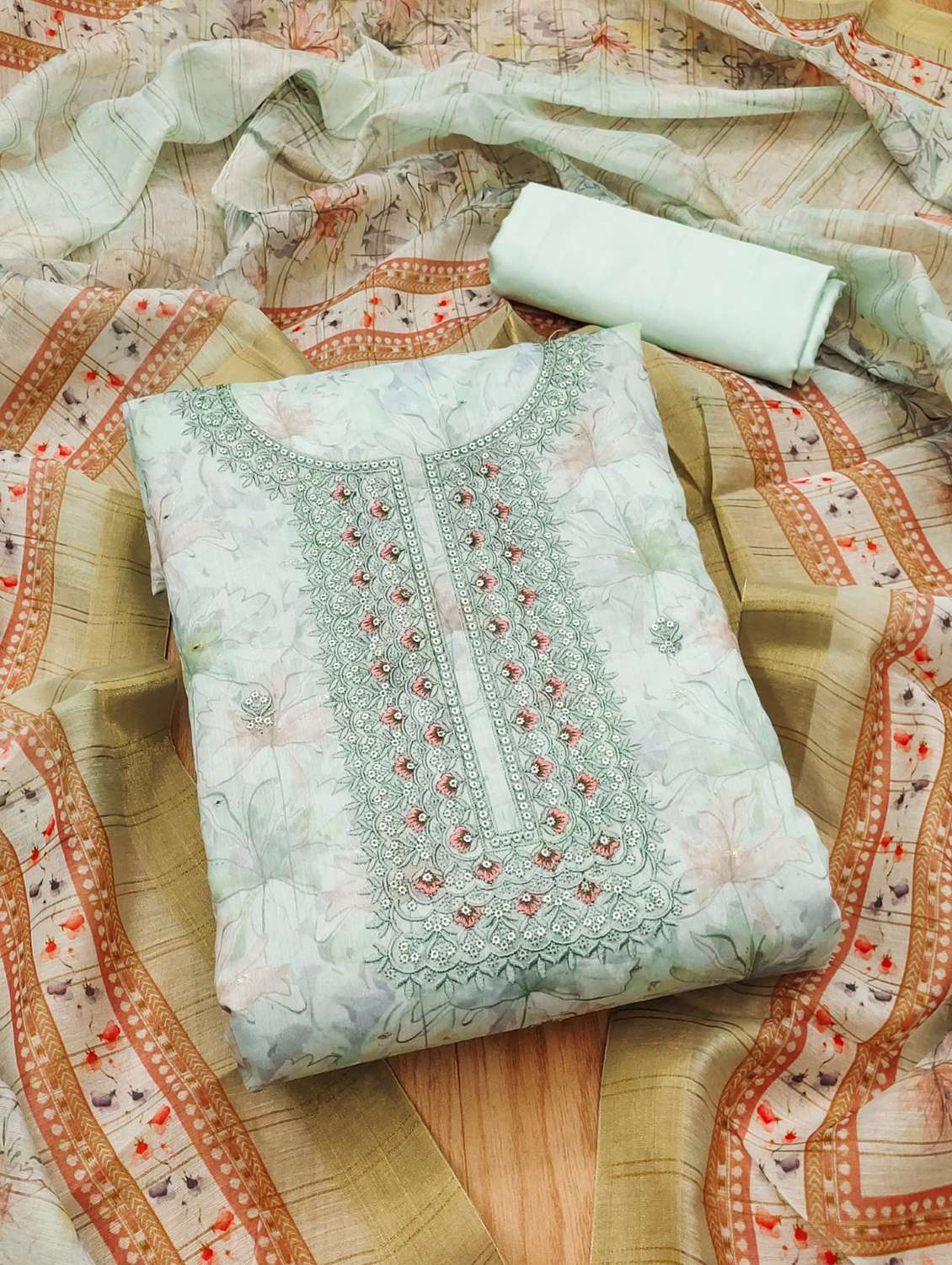 women embroidered unstitched suit set