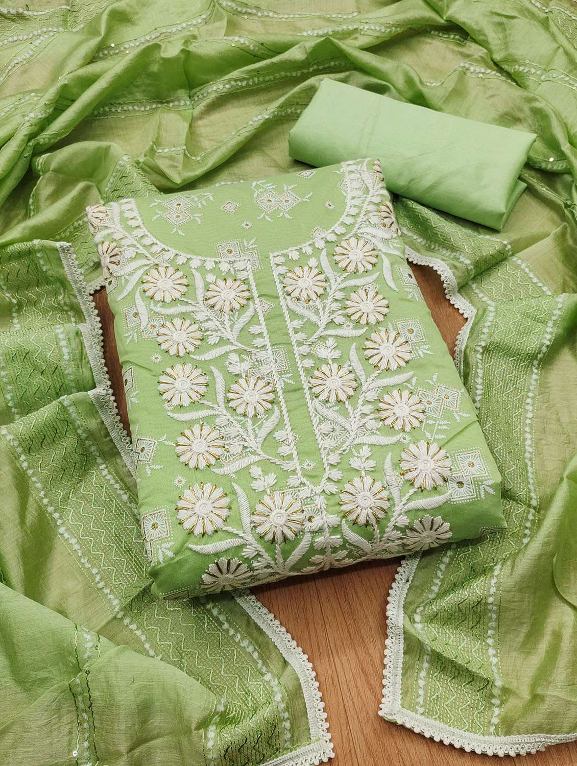 - Look ultra gorgeous in unstitched suits from Leeli Peeri Designer and grab these beautiful suits in green colour.