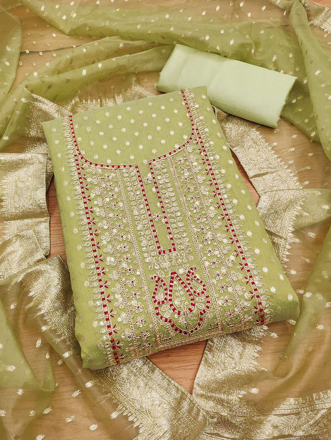 - Look ultra gorgeous in unstitched suits from Leeli Peeri Designer and grab these beautiful suits in neo mint colour.