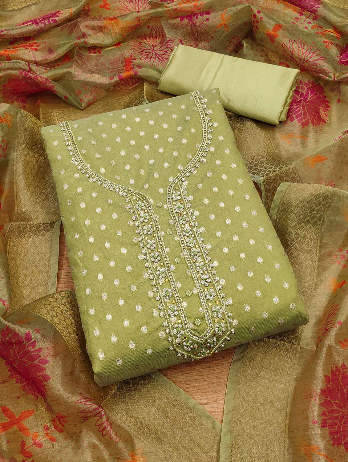 - Look ultra gorgeous in unstitched suits from Leeli Peeri Designer and grab these beautiful suits in neo mint colour.