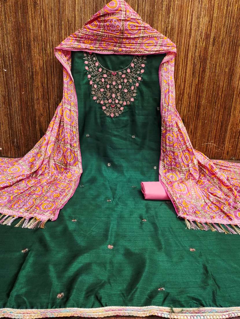 - Look ultra gorgeous in unstitched suits from Leeli Peeri Designer and grab these beautiful suits in green colour.