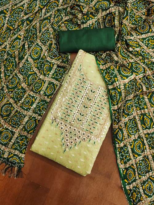 - Look ultra gorgeous in unstitched suits from Leeli Peeri Designer and grab these beautiful suits in neo mint colour.