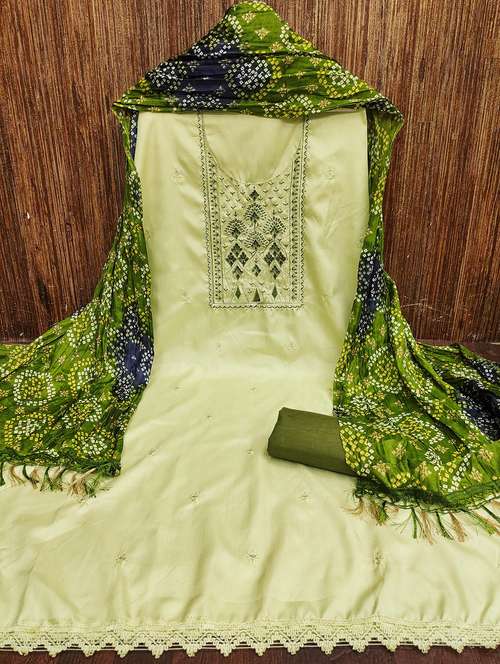 - Look ultra gorgeous in unstitched suits from Leeli Peeri Designer and grab these beautiful suits in neo mint colour.