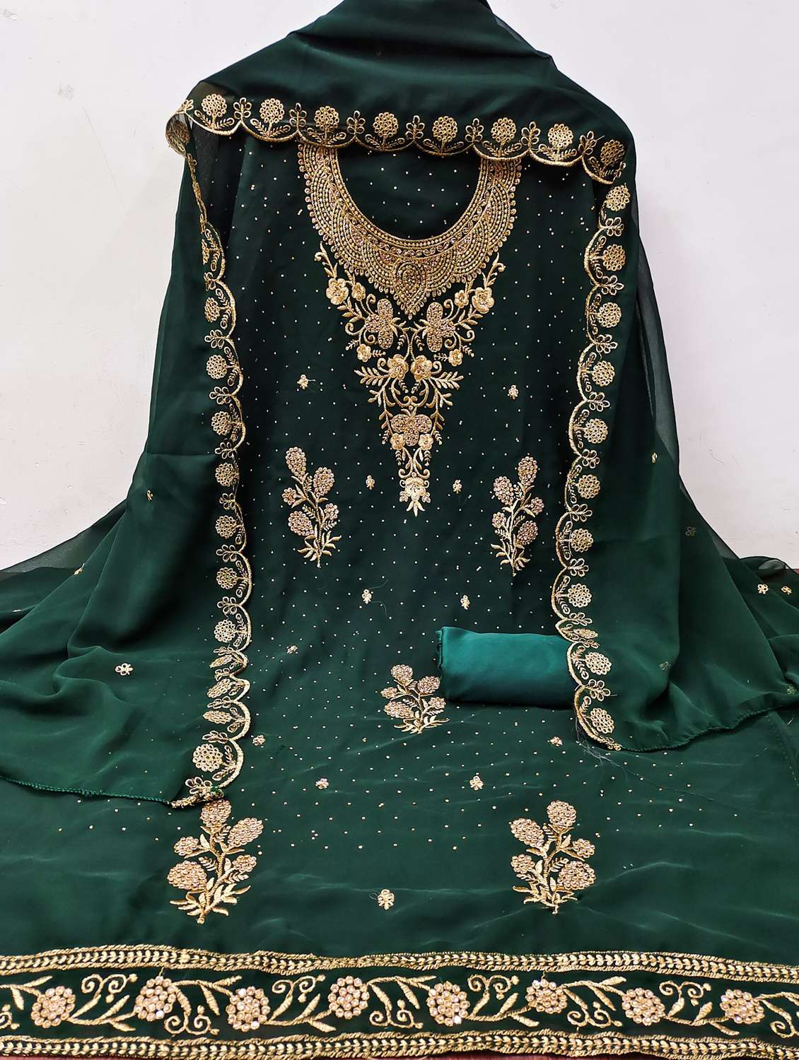 - Look ultra gorgeous in unstitched suits from Leeli Peeri Designer and grab these beautiful suits in green colour.