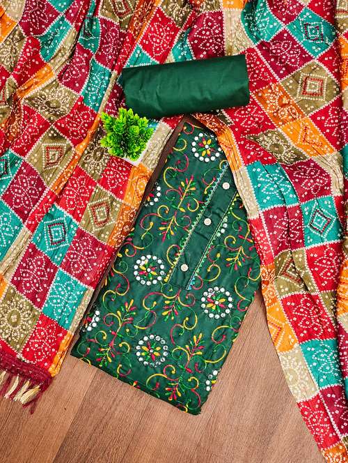• Look ultra gorgeous in unstitched suits from Leeli Peeri Designer and grab these beautiful suits in green colour.