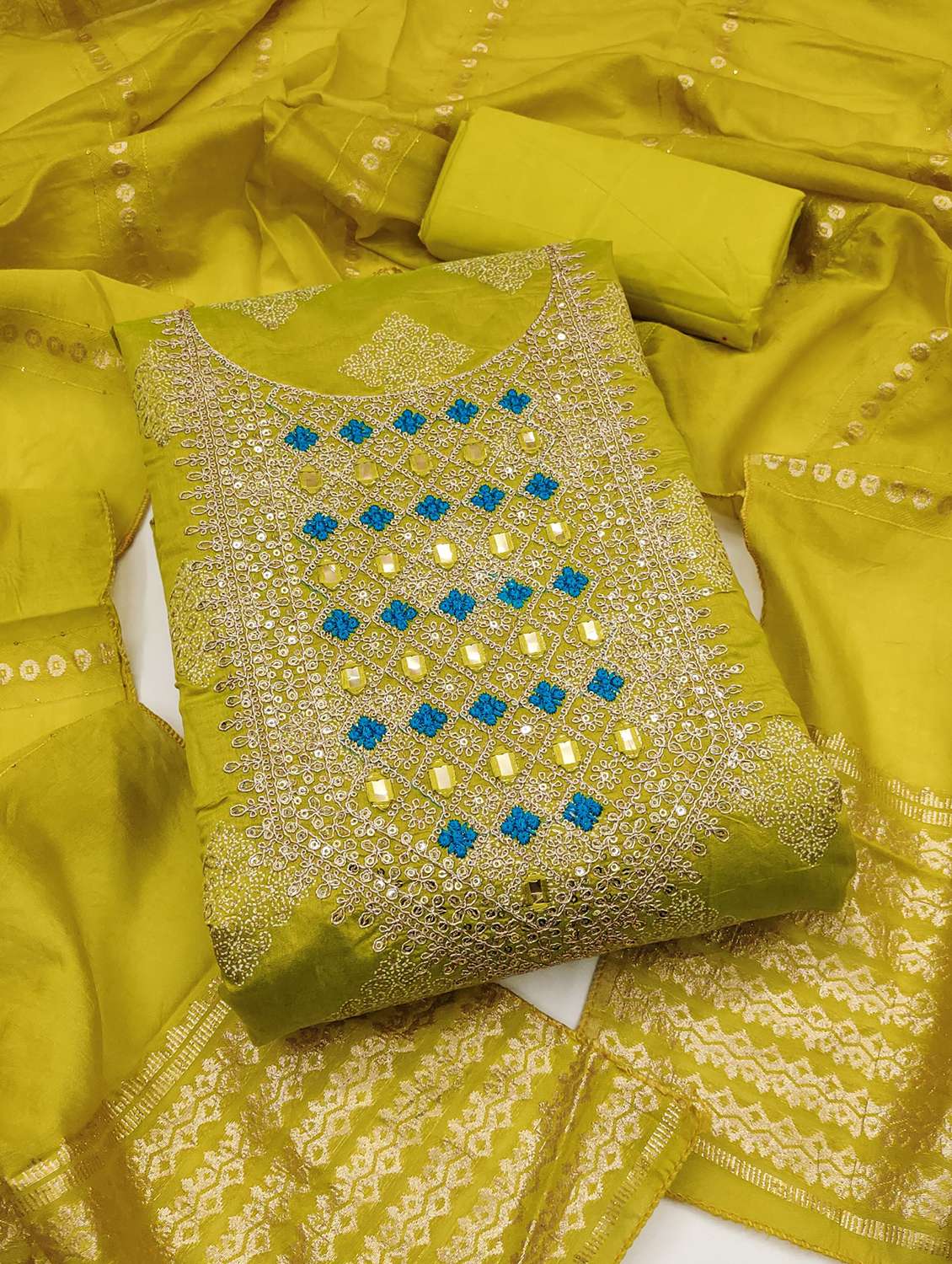 - Look ultra gorgeous in unstitched suits from Leeli Peeri Designer and grab these beautiful suits in lime colour.