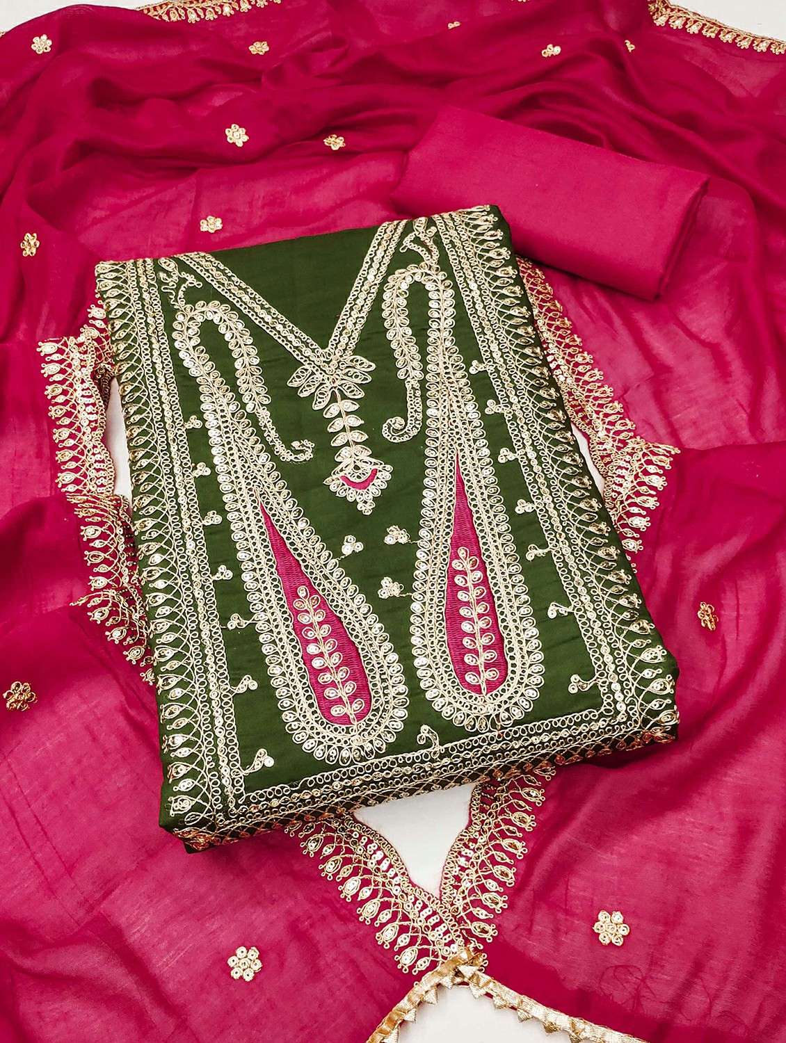 • Look ultra gorgeous in unstitched suits from Leeli Peeri Designer and grab these beautiful suits in green colour.
