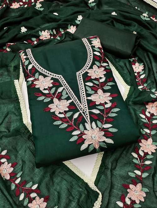 - Look ultra gorgeous in unstitched suits from Leeli Peeri Designer and grab these beautiful suits in green colour.