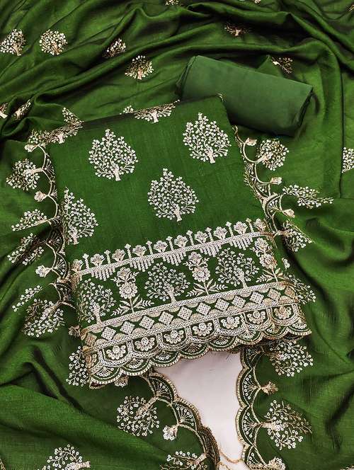 - Look ultra gorgeous in unstitched suits from Leeli Peeri Designer and grab these beautiful suits in green colour.