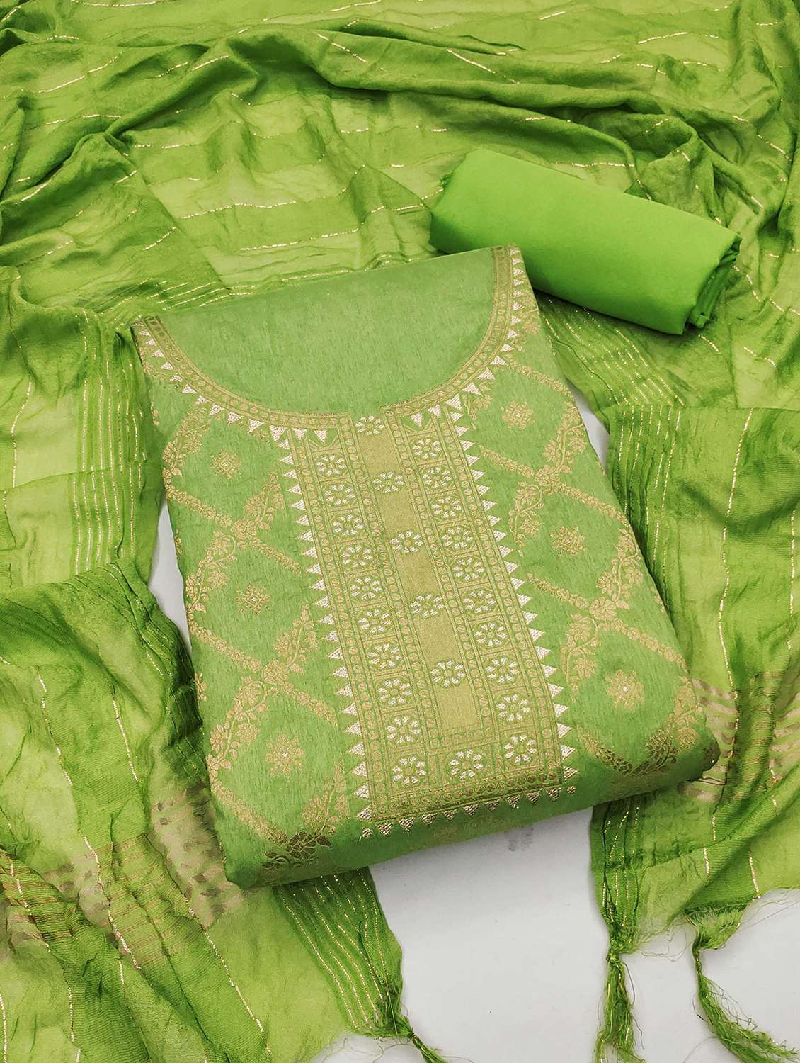 - Look ultra gorgeous in unstitched suits from Leeli Peeri Designer and grab these beautiful suits in green colour.
