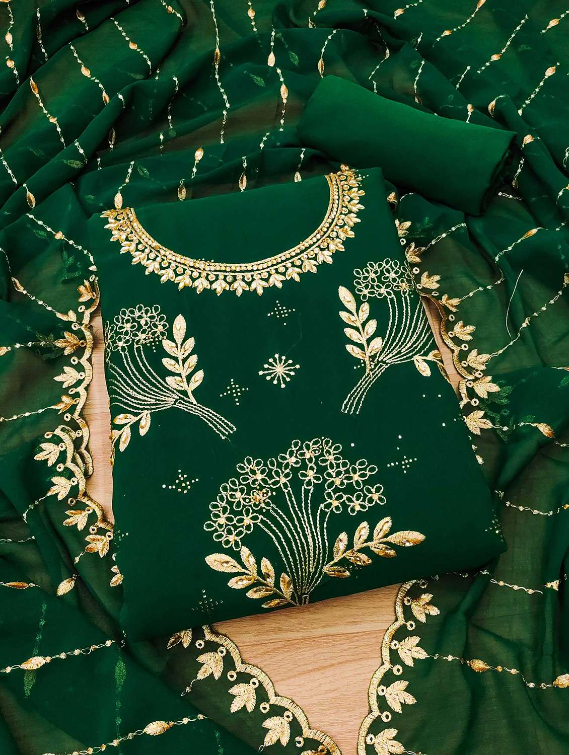 - Look ultra gorgeous in unstitched suits from Leeli Peeri Designer and grab these beautiful suits in green colour.