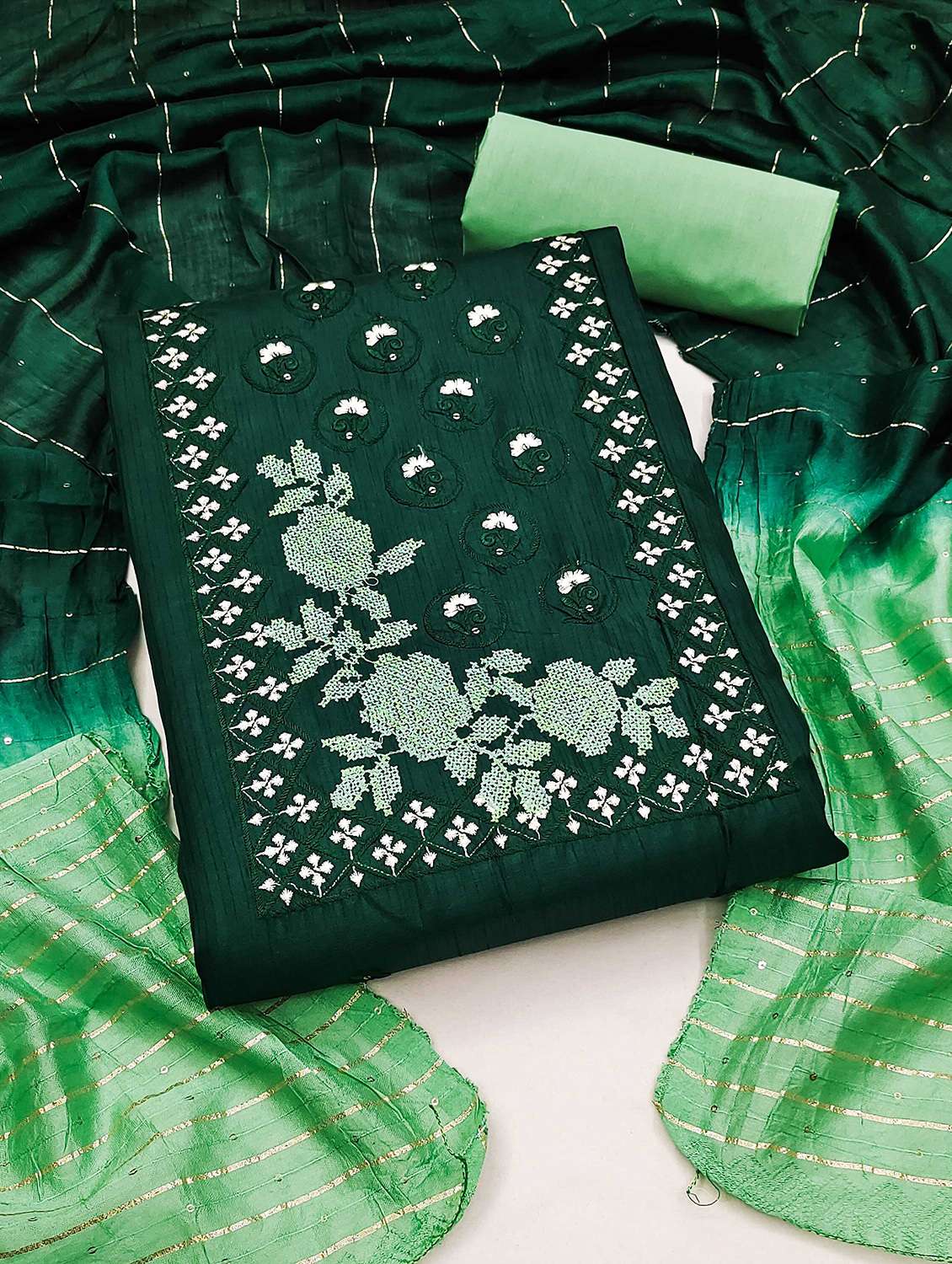 - Look ultra gorgeous in unstitched suits from Leeli Peeri Designer and grab these beautiful suits in green colour.