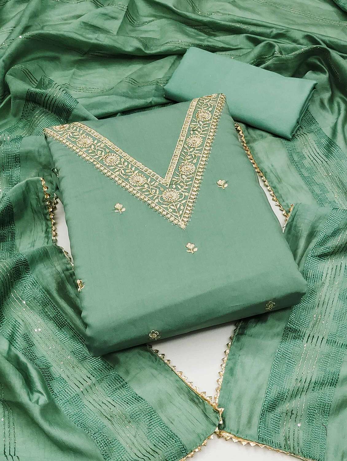 - Look ultra gorgeous in unstitched suits from Leeli Peeri Designer and grab these beautiful suits in green colour.