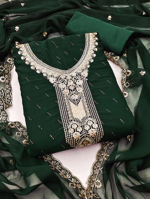 women solid with work embroidered unstitched suit set - 22022532 - Very Small Image - 1