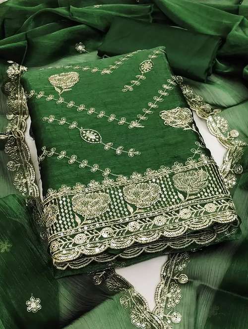 - Look ultra gorgeous in unstitched suits from Leeli Peeri Designer and grab these beautiful suits in green colour.