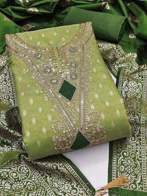• Look ultra gorgeous in unstitched suits from Leeli Peeri Designer and grab these beautiful suits in green colour.
