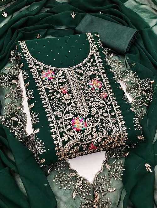 - Look ultra gorgeous in unstitched suits from Leeli Peeri Designer and grab these beautiful suits in green colour.