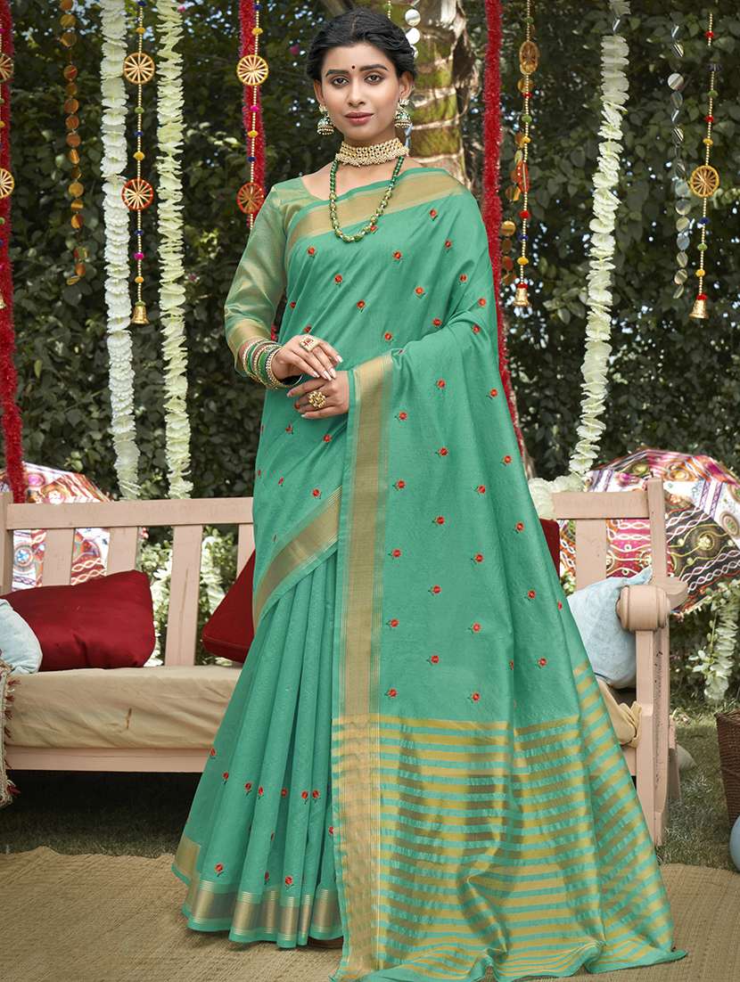 golden zari work woven saree with blouse