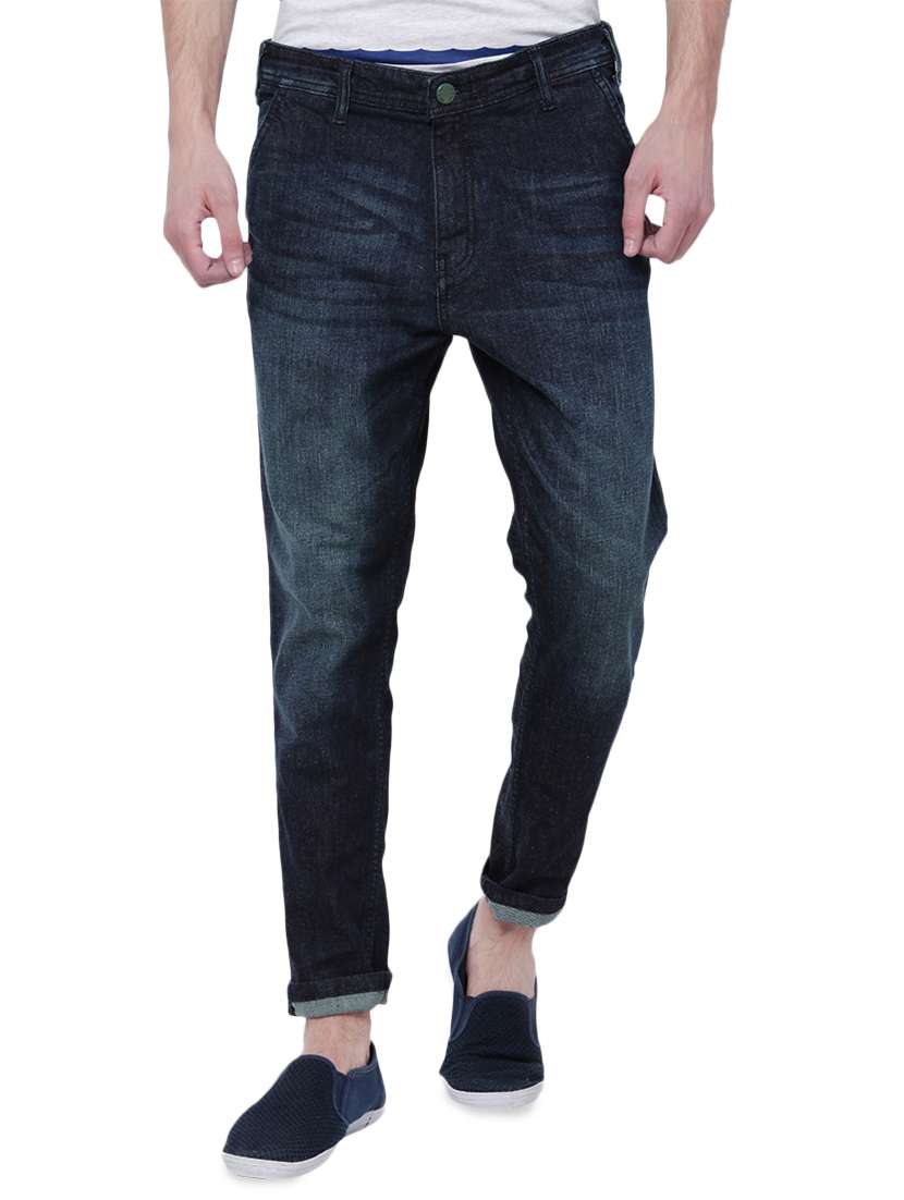 navy blue cotton blend washed jeans