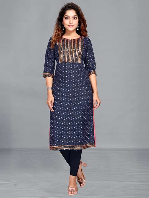 - Grab this beautiful kurta made up of cotton blend fabric featuring notch neck designs.