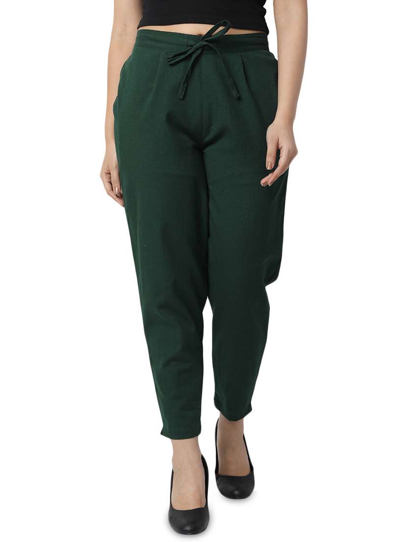 - » women solid green pleated trouser