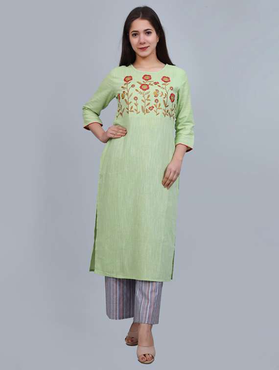 - » women green round neck straight kurta