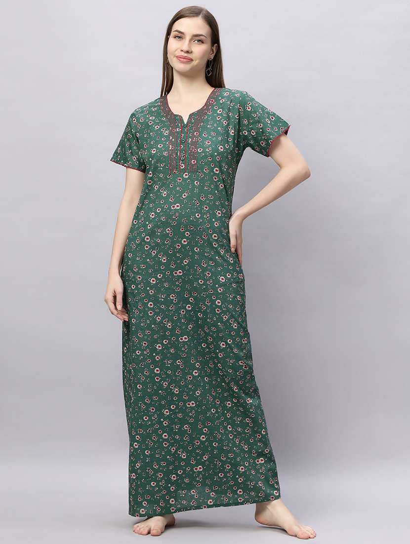Quira Comfortable Women's Full Length Cotton Blend Half Sleeves Nighty, Soft and Elegant Sleepwear