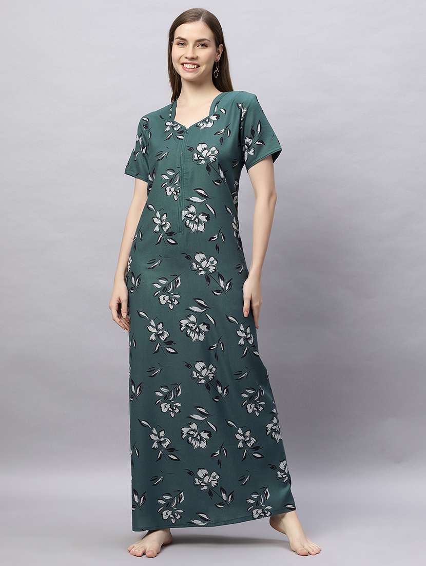 Quira Comfortable Women's Full Length Cotton Blend Half Sleeves Nighty, Soft and Elegant Sleepwear