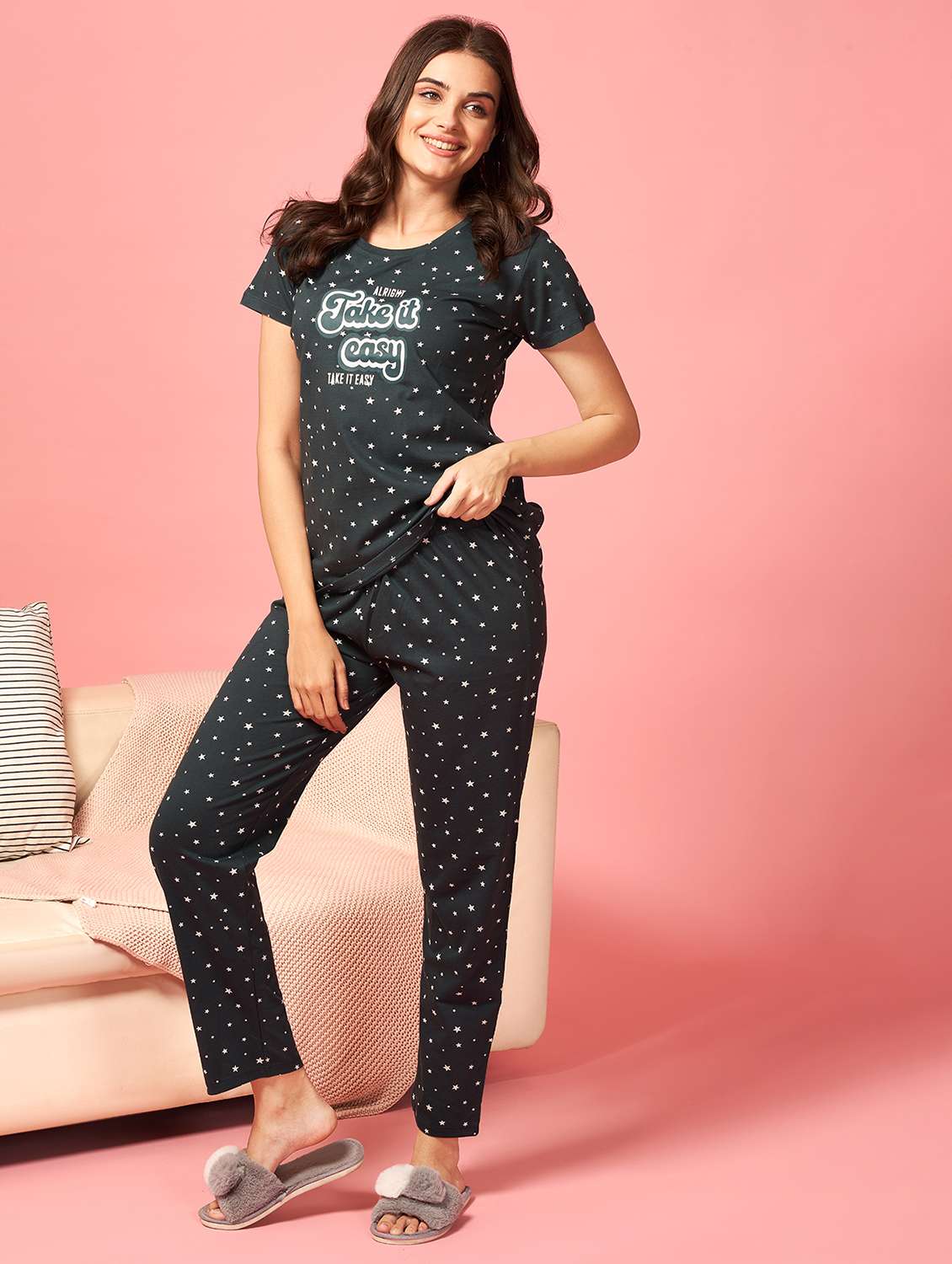 - Sleep in comfort with our wide range of women’s nightwear sets made of super cozy cotton blend fabrics and diverse neck designs available only at LimeRoad.