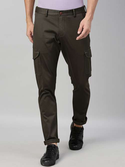 - » brown solid cargo trousers