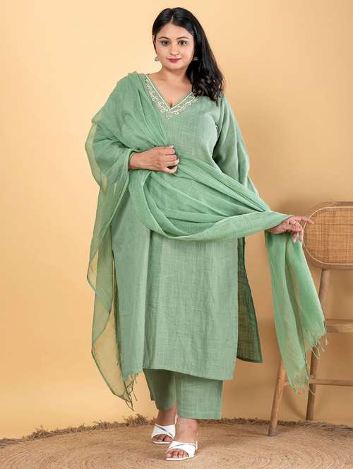 - Find gorgeous sets of ethnic wears in trending designs in green colors suitable for casual wear of occasions.