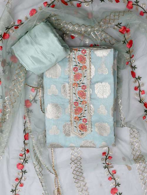 zari work self design unstitched suit set
