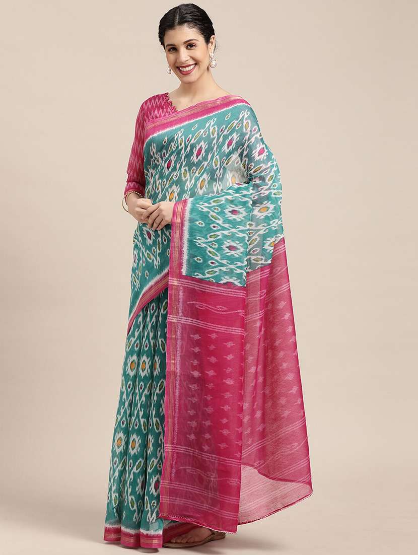 - » green cotton blend printed saree