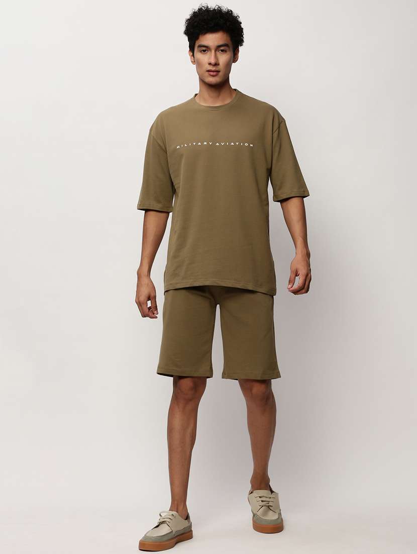 SHOWOFF Men's Round Neck Olive Solid Co-Ords Set