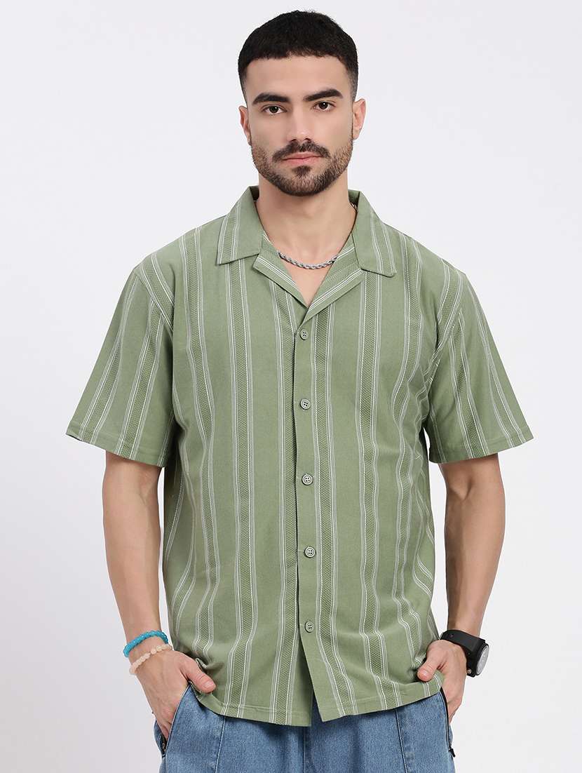 men vertical striped short sleeve casual shirt