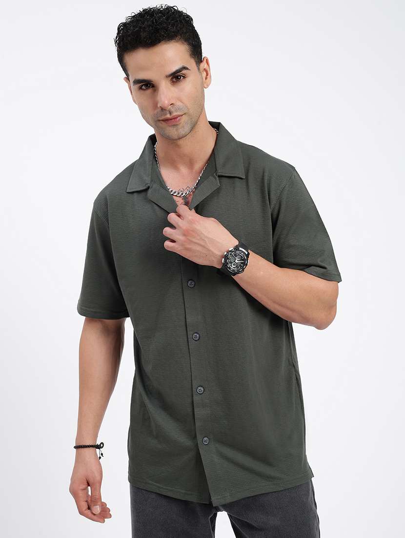 - » men loose fit solid cuban collar casual shirt