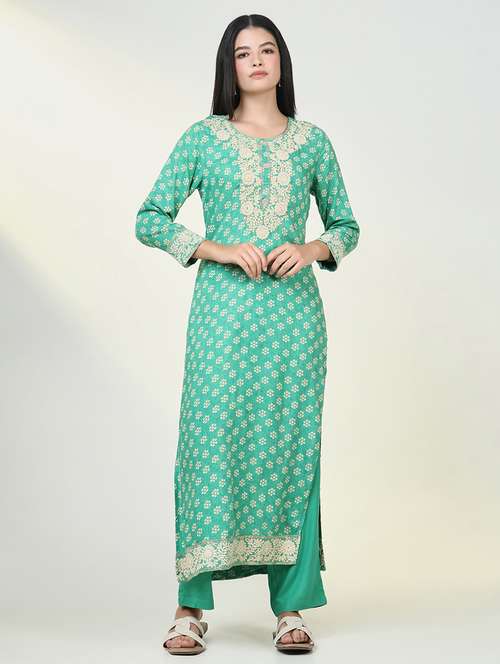 - Find gorgeous sets of ethnic wears in trending designs in sea green colors suitable for festive wear of occasions.