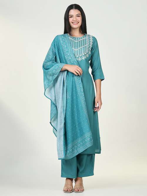 women embroidered kurta pant set with dupatta
