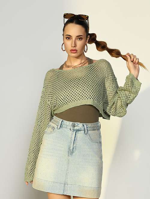 - » women crochet detailed long sleeves top with slip