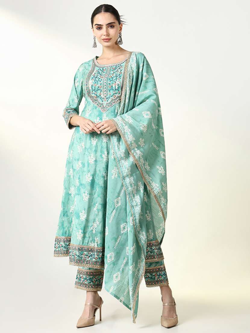 - Find gorgeous sets of ethnic wears in trending designs in sea green colors suitable for casual wear of occasions.