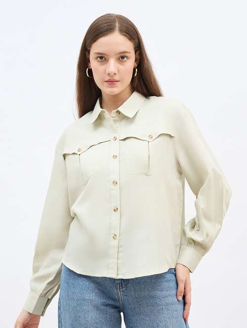 - » women solid collared long sleeve regular shirt