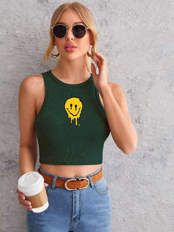 - » women printed sleeveless crop top